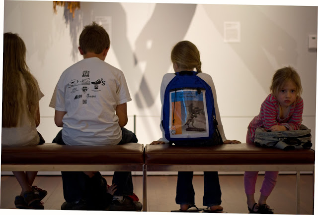 One morning during Spring Break we were all still in our pajamas when I found something that advertised a free day at our local art museum. So we threw on some clothes and ran a brush through some scraggly hair (had to squeeze it in before nap time and make the most of the early hours, which would mean quiet and less crowds to hassle with five kids) and left behind our towering piles of dishes and laundry. We only lasted an hour, but it was a great hour! I fell in love with art museums when we lived in Europe and my husband introduced me to the Rijksmuseum-- I've been hooked ever since! This one was small but good.